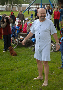 Vlna nových materiálů plavek se nevyhnula ani Jedovnici. Karel předvádí poslední typ neoprenu | |