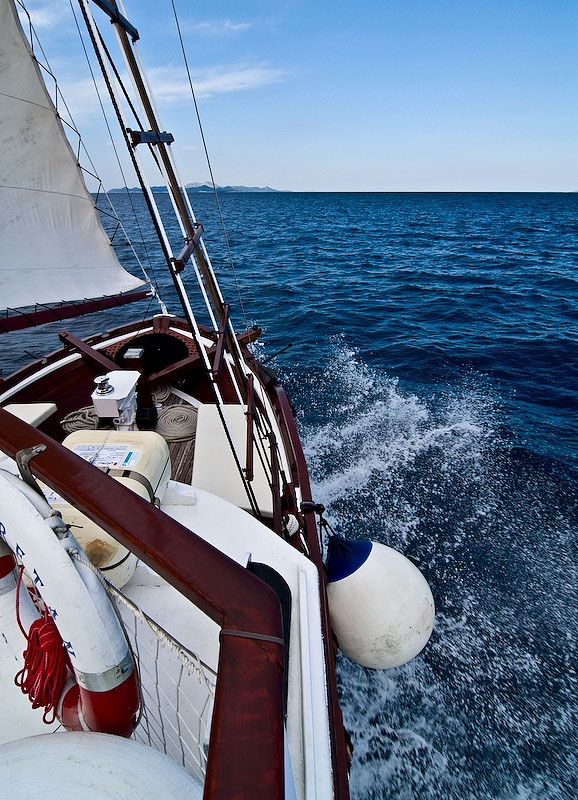 Plujeme směr Lastovo. Počasí je bezva, hurá.
